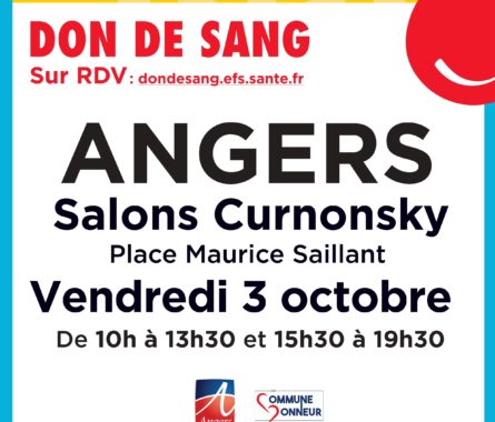 Vendredi 3 octobre 2025 : Mon sang pour les autres, lieu : Salons Curnonsky, 6 Pl. Maurice Sailland, 49100 Angers