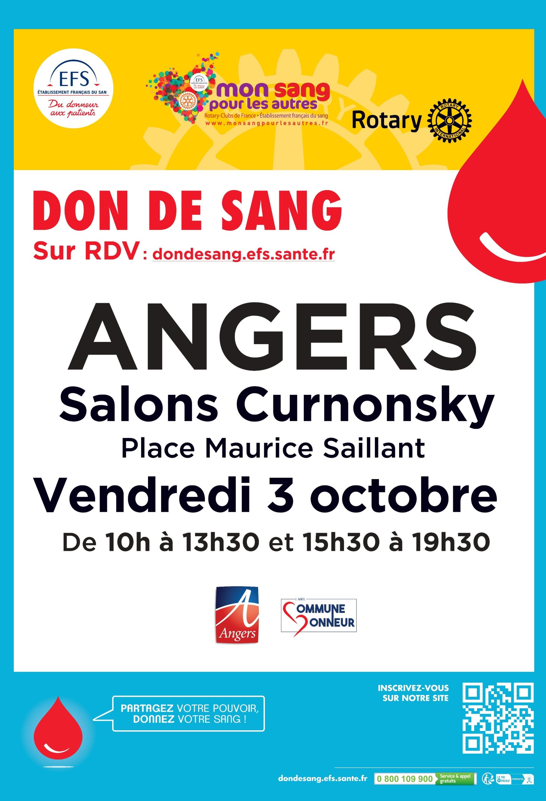 Vendredi 3 octobre 2025 : Mon sang pour les autres, lieu : Salons Curnonsky, 6 Pl. Maurice Sailland, 49100 Angers